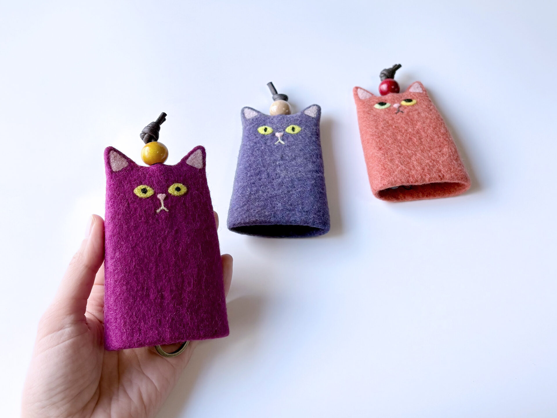 羊毛,綿刺繍糸,スナップボタン,エコレザーストラップ,ナイロン樹脂,アルコール